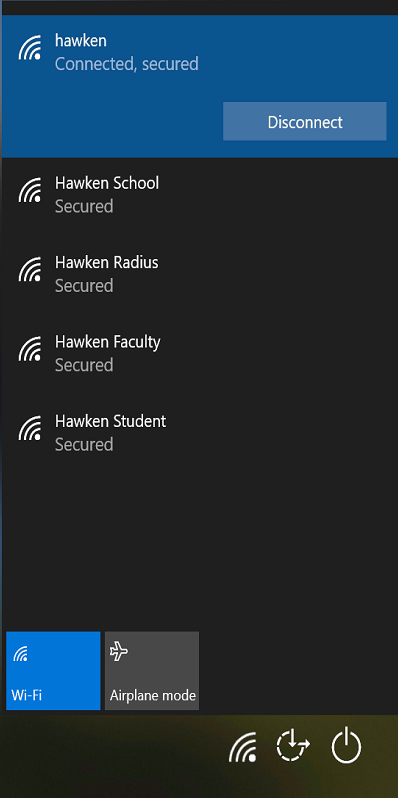 Our primary method of access to Hawken network resources is through a Microsoft technology called Always on VPN. You can check to see if you are successfully connected to Always on VPN by clicking on your network icon and looking for the status of ...